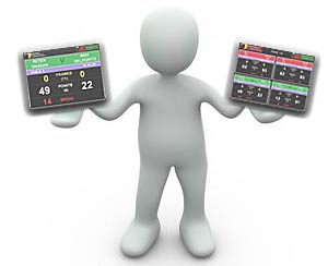 ProScore does not require you to walk to the computer frequently. In fact, you can do the scoring from a mobile device on the same network (LAN), such as iphone, android phone, iPad, laptop, tablet etc. There is no app to install, the remote control is accessed through a web browser on your Wi Fi device.