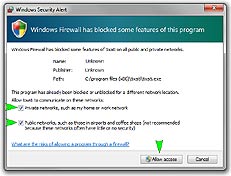 It's important to click "Allow access" when the prompts appear, otherwise Windows Firewall may block the Live Scoring & wireless scoring functions from operating. Note that these prompts might appear "behind" the scoreboard so you might only see these prompts when switching Windows order (ALT-Tab).